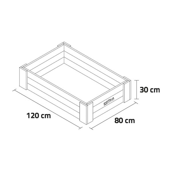 Caixa de madeira, modelo L30 de Hortalia, é feito de madeira de pinho nórdico de alta qualidade, adequado para uso ao ar livre sem necessidade de verniz. São especialmente concebidos para serem integrados no jardim ou no campo directamente no terreno.