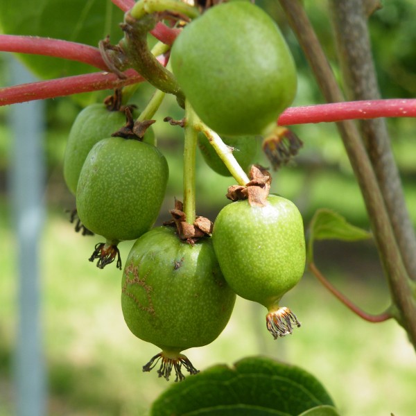Este kiwi Geneva dar-nos-á kiwis mais pequenos do que os tradicionais, de cor avermelhada, mas muito mais doces. São consumidos com a pele por ser macia. É também uma planta de kiwi muito produtiva. Colheita no final do verão.