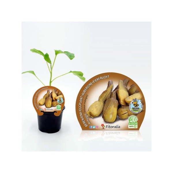 Muda de beringela para enlatamento Almagro natural, apresentada em vaso de 10,5 cm de diâmetro.
