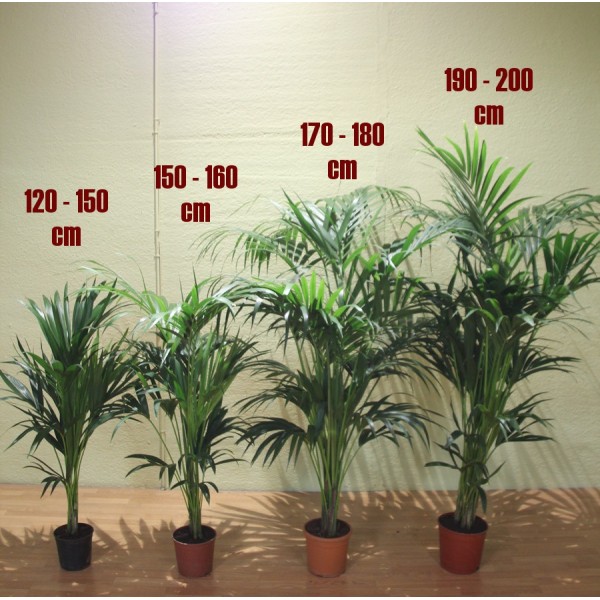 Temos Kentias de tamanhos diferentes, e quanto mais altas, mais hastes a planta tem. Portanto, à medida que a altura aumenta, a folhagem da planta também aumenta.