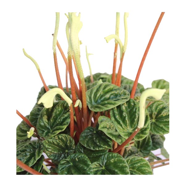 Planta de casa muito resistente e ligeiramente suspensa. A peperomia caperata produz inflorescências muito características e espetaculares.