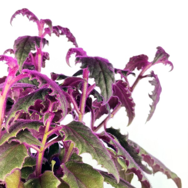 Planta de interior de crescimento moderadamente rápido, que se abre por suas folhas verdes com as bordas intensamente roxas, aveludado com cabelos roxos, o que lhe dá um ar espetacular.