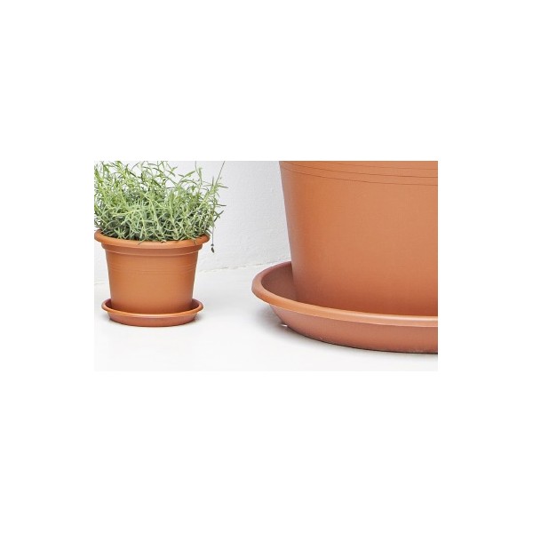 Prato redondo em plástico injetado de alta qualidade, muito resistente ao sol e ao frio. Nas cores terracota e antracite, é universal para a nossa gama básica de potes de plástico. Adapta-se a todos os potes de plástico redondos em nosso catálogo.