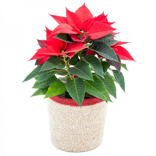 A poinsétia vermelha é a clássica planta de Natal que não pode faltar em nenhuma casa. Planta de interior com folhagem verde e vermelha, necessita de regas moderadas (2 vezes por semana), nunca molhar as folhas, e ambiente húmido e longe de aquecimento.