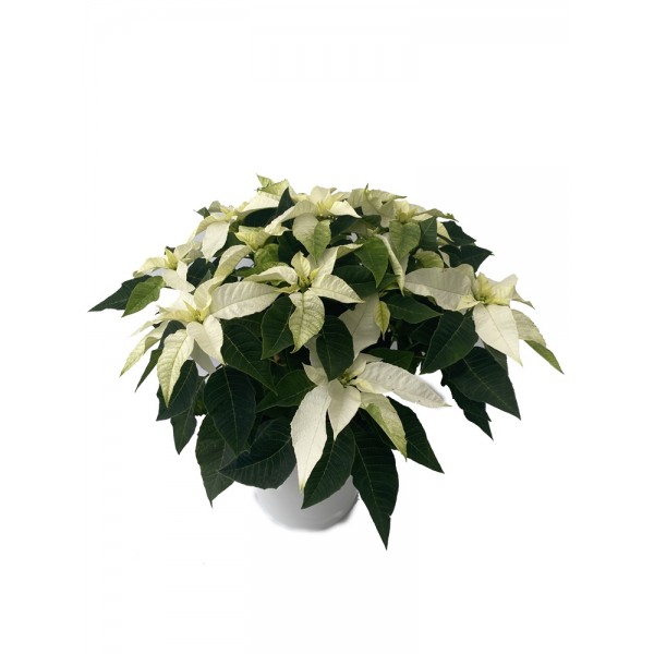 A poinséttia branco é uma ponsétia do mesmo tamanho, tamanho e cuidado que a poinsétia tradicional, mas de cor branco. Uma proposta diferente para este Natal.