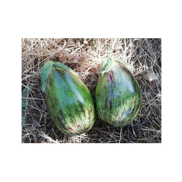 Planta que produz arbustos bastante baixos, com folhagem clara, de produção média. Os frutos são “cúpulos” com uma bela cor verde listrada, a polpa também é levemente verde. Tem sabor suave, mas com personalidade. A pele é tão fina quanto a preta.