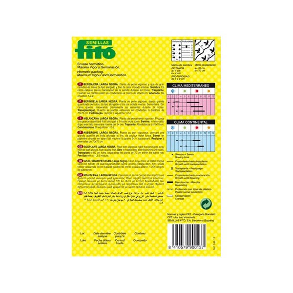 | Tipo de beringela | Semente de beringela longa ou semilonga |