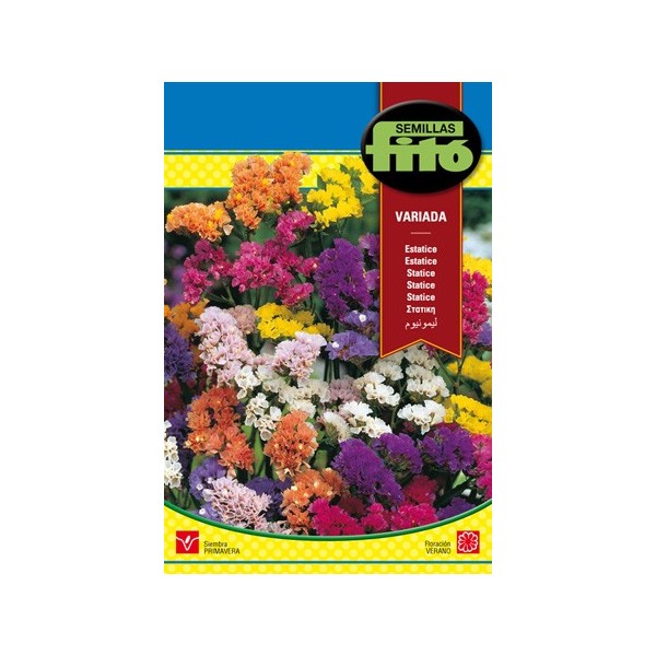 Limonium sinatum. Planta muito ramificada, cultivada pelas suas flores espigas terminais de diversas cores, que conservam a cor depois de secas.