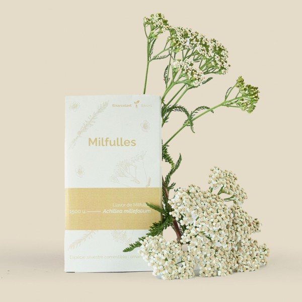 A semente de Achillea millefolium é de uma espécie perene encontrada principalmente em zonas montanhosas. É uma planta rasteira devido ao seu crescimento rizomatoso, que produz folhagem abundante ao nível do solo. As folhas são muito segmentadas, razão pela qual é designada por mil-folhas. Produz pequenas flores brancas que se agrupam formando uma inflorescência vistosa. Pode-se fazer infusões com ela ou consumir as flores e folhas.