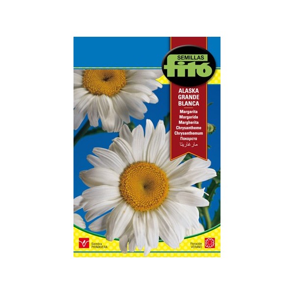 Chrisanthemum leucanthemum Alaska. Planta viva com flores brancas. No verão, há grandes flores brancas com capítulo branco e coração amarelo.