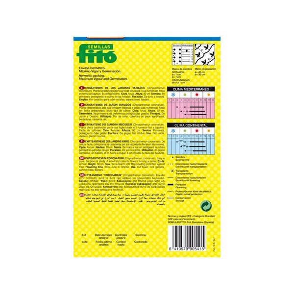 Chrisanthemum coronarium. Planta anual caracterizada por suas folhas lobadas e suas numerosas flores em forma de capítulo. É fácil crescer.
